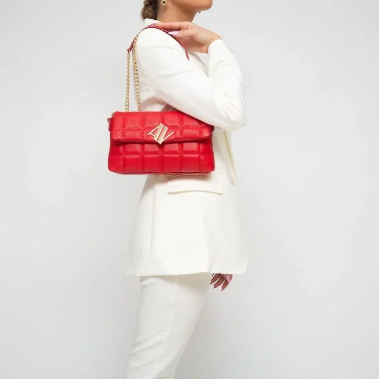 AMELIA schoudertas rood doorgestikt leer Italiaans designermerk Anna Virgili